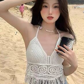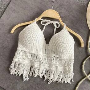 Linda Frente Única de tecido de poliéster com textura macia, superconfortável. Barra de bralette com tiras sem mangas com design de franja de crochê, copas acolchoadas, gola halter, amarração costurada nas costas, sexy e chique. Combine com jeans, leggings e shorts para um visual moderno. A blusa de biquíni Boho Cropped Crochê é perfeita para a praia às ruas e momentos felizes de verão, como férias, festas na piscina ou festas em clubes. Especificações: Cor: Branco ou BegeComprimento da camisa: top curto Estações: Primavera, Verão Material: Poliéster Tamanho Único: veste P e MOcasião: perfeito para praia, performance, festa, clube, festival de música, Halloween, cosplay e uso diário.