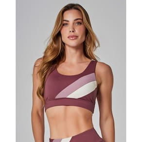 O Top Alta Sustentação Motion possui costas com detalhe em tiras, possui frente com recorte tricolor.