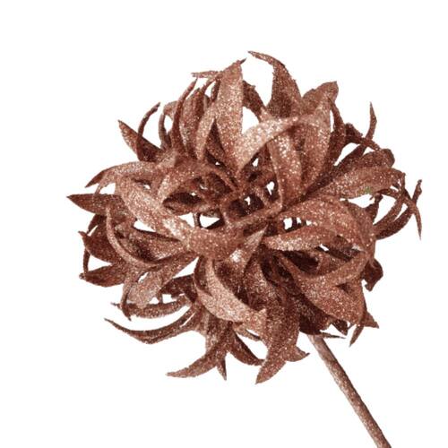 Topiara de Natal 12cm de diâmetro na cor Rose Gold com Haste de 72cm em arame revestido com fibras e glitter.