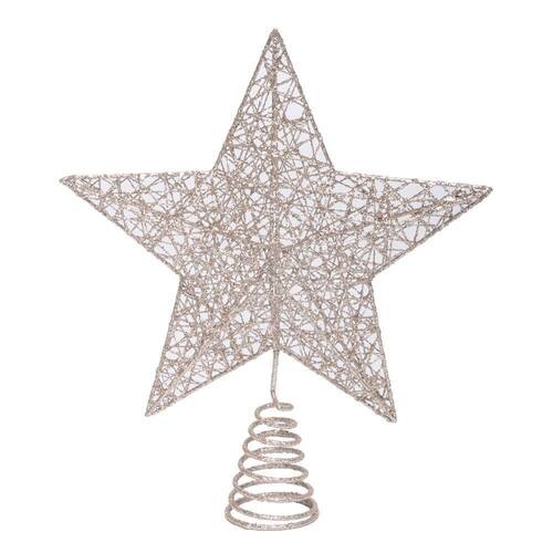 Ponteira de arvore decorativa formato estrela trabalhada em gliter na cor champagne. Tam G - Embalagem de Venda: 1 UN - Cor Predominante: CHAMPAGNE - Instruções de Limpeza: Limpar somente com espanador - Categoria: Natal