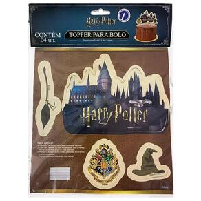 Contém: 01 Topo de Bolo da Harry Potter Cenário Topper (01 Topper maior e 03 Picks)