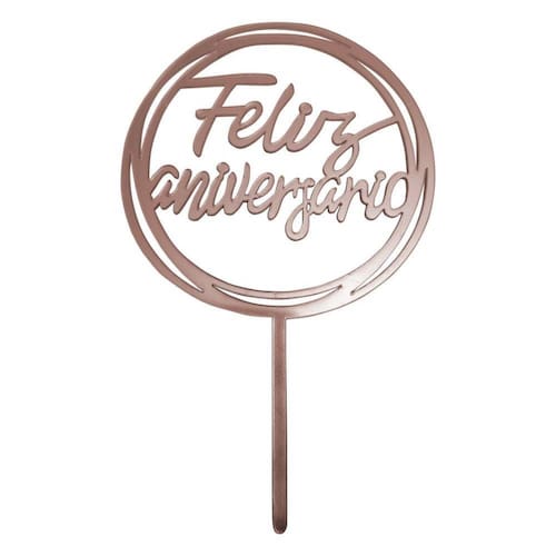 01 un - topper de cake feliz aniversário redondo. Rose. Eixo firme. Ref.: ca-04.