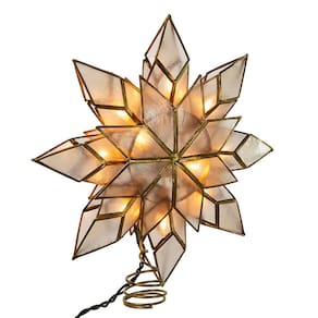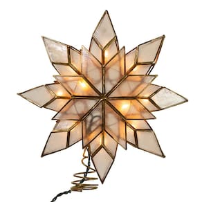 Chapéu de capiz Star Tree de 8,5 polegadas Kurt Adler com 10 luzes transparentes e 1 lâmpada extra - Adorne lindamente e festivamente as copas das árvores natalinas com esta estrela capiz transparente de Kurt Adler - Contém 10 luzes brancas transparentes dispostas para melhor exibição - Feito com uma moldura cor de latão, revestimento transparente e fiação padrão - Inclui 1 lâmpada de reposição para maior eficiência - Segura somente para uso interno; mede aproximadamente 9 polegadas de diâmetro