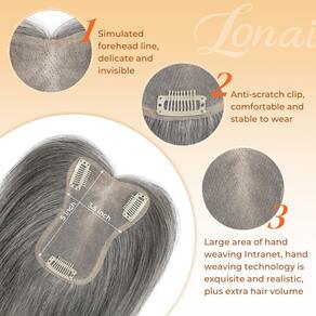 Nome do produto: Toppers de cabelo humano real LONAI para mulheres Material: 100% cabelo humano real Cor: cinza claro/cinza prateado com marrom misturado/prata branco/preto natural/marrom chocolate/marrom médio/marrom chocolate com destaque loiro/marrom médio com destaque loiro Tamanho: 30,5 cm Para muitas ocasiões: encontros, compras, férias, vida diária Resolva vários problemas de cabelo: calvície, queda de cabelo, cabelo esparso Estilo: Topper de cabelo Vantagem: Suporta ferramentas quentes para enrolar, tingir e aparar. A textura dos topos de cabelo é igual ao seu próprio cabelo. Os topos de cabelo humano de verdade LONAI para mulheres, usando 100% cabelo real, confortável de usar, rede interna pura tecida à mão, tornando-a mais real, natural bonita e confortável, é sua marca de primeira escolha para criar uma forma perfeita. Protetores de cabelo humano de verdade para mulheres com aparência de franja natural, feitos de cabelo 100% real, rede interna tecida à mão, não apenas resolve seus problemas de cabelo, mas também melhora sua aparência e aumenta sua confiança. - [Topper de cabelo humano 100% real]: Feito de cabelo humano puro 100% real, faz com que os topos de cabelo se pareçam com o seu próprio cabelo. É macia, suave e fácil de pentear. Além disso, os protetores de cabelo LONAI adicionam 60% mais volume do que produtos similares e sentem o efeito mais cheio. - [Volume extra de cabelo]: o topo de cabelo humano LONAI é 100% mais cabelo do que o mesmo modelo no mercado, então a área de cabelo ausente é mais real e natural após o uso, e a sensação geral é cheia - [Grande área tecida à mão]: na área de 12,7 x 9 cm, os trabalhadores usam as agulhas e fios mais delicados para costurar o cabelo um por um, tornando o topo extremamente natural e dando uma forte sensação de realidade quando utilizado na cabeça. - [Topper de cabelo versátil]: nosso topo de cabelo é projetado para cobrir 360° manchas carecas, cabelos finos e até mesmo raízes grisalhas. Melhor ainda, tem franjas naturais de oito formas que podem trazer penteados modernos. Mude seu visual rapidamente. - [Fácil de usar]: Clipe, ajuste, feito em 5 segundos. Nosso enfeite de cabelo tem 3 clipes antiderrapantes para torná-lo estável e firme para usar e adicionar volume instantâneo à sua área superior, e o clipe é seguro mesmo em sua linha fina da frente. Aumente sua confiança em um instante. - [Dicas]: na fotografia de produtos reais, podem ocorrer pequenas diferenças de cor devido à iluminação da fotografia e a diferentes configurações de cor do monitor. Se você tiver alguma dúvida, sinta-se à vontade para entrar em contato com nosso atendimento ao cliente. - [Várias ocasiões]: Se você estiver saindo para um encontro, compras, combinando com sua roupa ou participando de um evento especial, traga seu enfeite de cabelo. Perfeitamente para uso diário ou para criar um estilo mais charmoso para festas, cosplay e sessões de fotos.
