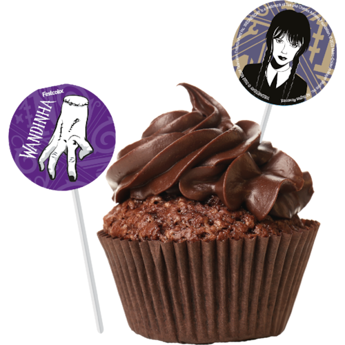 Topper p/ Doces Wandinha C/8 Festcolor. Amiga inseparável de sua