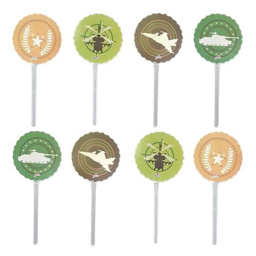 Contém: 8 Topper Pick para Docinhos e Salgados Exército Camuflado