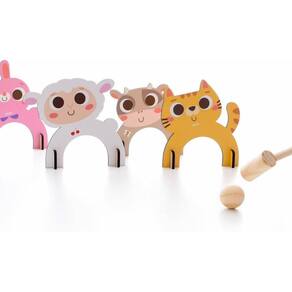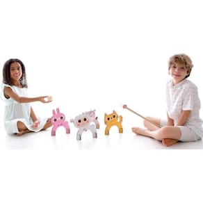 Este jogo encantador apresenta arcos em formato de bichinhos, tacos e bolinhas de madeira. Junte seus amiguinhos e desafie a concentração e coordenação motora de forma lúdica e divertida com nossos adoráveis bichinhos.
