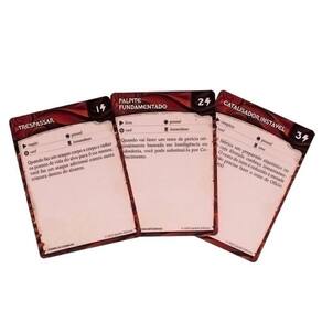 O Baralho de Poderes é um acessório para Tormenta20, o maior RPG do Brasil! São 224 cartas em formato padrão (63,5 mm x 88 mm): 215 Poderes, 1 carta legenda e 8 cartas em branco para você criar os seus. Contém todos os poderes ativos do Livro Básico - Edição Jogo do Ano. O baralho facilita a criação de personagens, e ter as cartas de seus poderes na mão garante que você nunca esquecerá de usá-los nos momentos mais importantes.