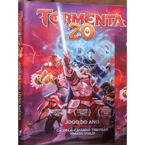 TORMENTA20 é o maior e melhor RPG brasileiro. Mas também é muito mais. O recordista absoluto de financiamento coletivo no país. O jogo de aventura com a maior e melhor comunidade. O mundo fantástico com as sagas mais épicas. Visite cidades exóticas como Valkaria e Nova Malpetrim. Enfrente soldados da Supremacia Purista, mortos-vivos de Aslothia e trolls do subterrâneo. Defenda o Reinado e o Panteão da ameaça de Aharadak, o Deus da Tormenta. Este mundo com décadas de história ficou ainda mais mágico. Mais instigante. Mais mortal. Seja você um jogador veterano, seja um novato ansioso por sua primeira aventura, aqui está sua chance de vivenciar Arton. Seu convite. Seu desafio. Este livro traz tudo que você precisa para criar personagens e histórias no principal universo de fantasia do Brasil. • 17 Raças. De clássicos como anões, elfos e goblins a recém-chegados como dahllan, golens e os esqueletos osteon. • 14 Classes. Escolha a sua maneira de enfrentar desafios entre opções como arcanista, cavaleiro, inventor e paladino. • 35 Origens. Decida o passado de seu aventureiro para criar centenas de combinações. • Instruções para mestres novatos e veteranos conduzirem sagas épicas com facilidade. • Novas regras para perícias e magias. Seu jogo nunca foi tão ágil e divertido! • História e geografia de Arton, incluindo linha de tempo, novo mapa e a descrição dos principais reinos. Esta é a edição JOGO DO ANO, com conteúdo revisado e expandido a partir do feedback da maior comunidade de RPGistas do Brasil .