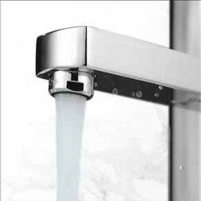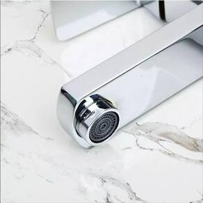 Material: Metal e ABS Torneira em liga de cobre e zinco de alta qualidade com cromado triplo e cartucho de cerâmica; Água quente e fria alimentadas por tubos de entrada diferentes; Pode ser utilizado somente com água fria, mas é necessário instalar um conector T; Misturador monocomando para regular a temperatura da água; Válvula de cerâmica para maior resistência; Acabamento cromado triplo de alta resistência à corrosão; Altura: 29 cm Largura: 6 cm Profundidade: 15 cm Altura da queda d'água: 19 cm Cartucho Cerâmico de alta performance (500.000 ciclos).