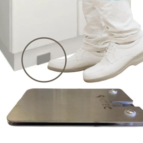 produto nacional com 1 ano de garantia, excelente durabilidade. Despachamos em 24 horas. Acionador elétrico para torneiras com pedal em inox. Descrição