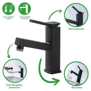 A torneira para lavatório monocomando da kokay possui um design moderno, funcional e elegante, com acabamento cromado e linhas retas. Com mangueira extensível embutida, controla a temperatura e vazão da água com um único movimento, proporcionando maior conforto e praticidade na utilização. E o melhor: a bica é móvel, podendo ser girada em até 1080 graus, facilitando a utilização o e a limpeza do lavatório. Você vai se surpreender com a qualidade e a beleza desse produto. Kokay: um mundo de facilidades para você.