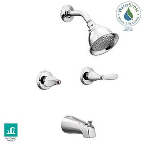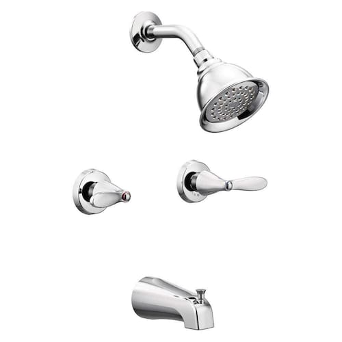 Moen 82602 Torneira para banheira e chuveiro Adler com 2 manípulos, 1 spray para banheira e chuveiro com válvula cromada