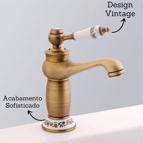 Torneira Banheiro Bronze Porcelana Baixa Monocomando Vintage
