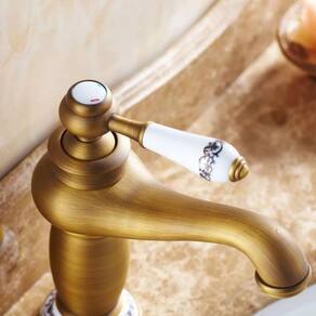 Torneira banheiro Bronze Porcelana Baixa Monocomando Vintage