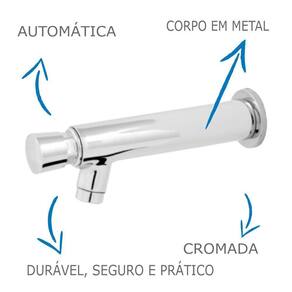Para deixar o banheiro impecável em todos os detalhes e ainda consumir menos água, uma opção excelente é esta torneira. Com fechamento automático e design moderno, ela proporcionará economia de água e dará um toque especial ao banheiro, unindo o útil ao agradável. Com estrutura em metal, um material com características essenciais a esse tipo de peça, resistência e durabilidade, ela recebe acabamento cromado que a torna ainda mais bela. A linha automática com temporizador é fabricada de acordo com os rigorosos padrões de qualidade internacionais, e vem com fechamento automático com temporizador entre 6 e 10 segundos. Somando a isso, este modelo acompanha mecanismo economizador de água, conferindo uma economia de até 60% em relação às torneiras comuns.
