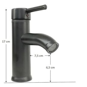 Material: Liga de Aço Inox e Cobre Acabamento: Acabamento preto fosco. Pressão Mínima: 4 Mca Pressão Máxima: 40 Mca Temperatura máxima da água: 90C - temperatura recomendada 65c Bitola: Furo bancada: 35mm
