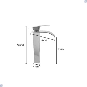 TORNEIRA PARA BANHEIRO MISTURADOR MONOCOMANDO CROMADA CASCATA ALTAESPECIFICAÇÕES: Material: Metal com acabamento cromado Altura: 30cm Largura: 5cm Profundidade: 16 cm Diâmetro Bitola: 3cm Altura da Queda d'água: 24cm Furação da Bancada: 35 mm Cor: Aço cromadoITENS INCLUSOS- 1 torneira- 2 Mangueiras conectoras- Acessórios de fixação GARANTIA: 3 Meses à partir da data de entrega do produto