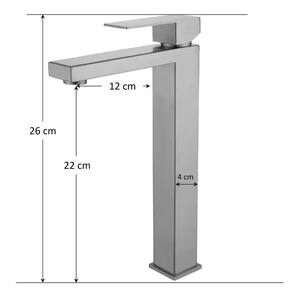 Torneira Banheiro Monocomando Quadrada Alta Aço Escovado Cor: Aço Escovado A Torneira Banheiro Monocomando Quadrada Bica Alta possui um design moderno proporcionando maior elegância ao seu banheiro ou lavabo. Fabricada com materiais de alta qualidade, seu acionamento com misturador monocomando integrado permite a saída de água quente e fria simultaneamente, permitindo a regulagem desejada e proporcionando temperatura agradável ao toque. Informações Técnicas: Material: Liga de Cobre Acabamento: Aço EscovadoPressão Mínima: 4 McaPressão Máxima: 40 McaTemperatura máxima da água: 90C - temperatura recomendada 65cConexão: Furo na bancada: 35mm Itens inclusos: Torneira, 2 Mangueiras flexíveis de aço trançado e kit de fixação. Recomendação de limpeza: Limpar apenas com pano macio e sabão neutro. Não usar produtos abrasivos como sapólio, palha de aço e produtos químicos. Observação: O produto não possui aquecimento interno, para utilização de água quente é necessário que possua aquecedor externo elétrico ou gás O produto também pode ser utilizado somente com água fria, sendo necessária a instalação de adapador tipo T não incluso . Marca: Alpes Metais