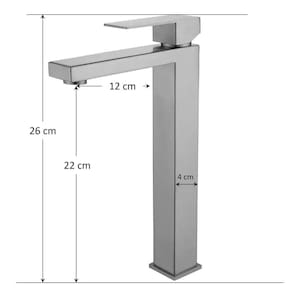 Torneira Banheiro Monocomando Quadrada Alta Aço Escovado Cor: Aço Escovado A Torneira Banheiro Monocomando Quadrada Bica Alta possui um design moderno proporcionando maior elegância ao seu banheiro ou lavabo. Fabricada com materiais de alta qualidade, seu acionamento com misturador monocomando integrado permite a saída de água quente e fria simultaneamente, permitindo a regulagem desejada e proporcionando temperatura agradável ao toque. Informações Técnicas: Material: Liga de Cobre Acabamento: Aço EscovadoPressão Mínima: 4 McaPressão Máxima: 40 McaTemperatura máxima da água: 90C - temperatura recomendada 65cConexão: Furo na bancada: 35mm Itens inclusos: Torneira, 2 Mangueiras flexíveis de aço trançado e kit de fixação. Recomendação de limpeza: Limpar apenas com pano macio e sabão neutro. Não usar produtos abrasivos como sapólio, palha de aço e produtos químicos. Observação: O produto não possui aquecimento interno, para utilização de água quente é necessário que possua aquecedor externo elétrico ou gás O produto também pode ser utilizado somente com água fria, sendo necessária a instalação de adapador tipo T não incluso . Marca: Alpes Metais