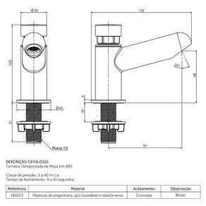 Torneira Blukit Temporizada em ABS De Mesa Cromado - As torneiras temporizadas Blukit têm como principal função diminuir o desperdício de água. Fabricada em ABS, seu funcionamento automático temporizado, gera economia de até 70%. Com um tempo de fechamento entre 4 a 10 segundos, libera apenas a quantidade necessária para cada acionamento. De instalação simples e manutenção rápida, são ideais para o uso em ambientes coletivos, como banheiros, estádios, rodoviárias, escolas, aeroportos e parques. Além disso, o produto possui fabricação nacional, proteção a raios UV, suporta baixa e alta pressão e acompanha redutor de vazão.Características Gerais do Produto: Marca: Blukit Bica: Baixa Bica Móvel: Não Instalação: Bancada Arejador: Fixo Material: ABS Garantia: 12 Meses Fabricante Acompanha o produto: 1 Torneira Temporizada Blukit 1 Canopla 1 Flange 1 Vedante 1 redutor de vazãoGarantia: 12 Meses Fabricante