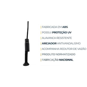 Torneira Clinica Hospitalar de Mesa 1/4 de Volta em ABS Preto Com Alavanca para Cotovelo Facilita o uso da torneira para pessoas que tenham mobilidade reduzida, incluindo idosos e até crianças; É útil para adaptação dos locais às medidas de proteção contra o e demais Bactérias, uma vez que sua abertura pode ser realizada com o cotovelo. Este produto é aplicado me locais como hospitais, consultórios, laboratórios, centros cirúrgicos, clínicas médicas e odontológicas do segmento da instalação predial que não pode ter contato direto com as mãos devido a higienização. Componentes - Plástico de Engenharia, Elastômeros e Cerâmica Higiênica: Acionamento através de cotovelo Durável: 200 mil ciclos de abertura e fechamento Rápida: Fechamento cerâmico com 1/4 de volta. Diâmetro - 1/2 Pressão de Serviço - 40 M.C.A. Acessibilidade- NBR 9050 Temperatura máxima - 60ºC Torneira Normatizada NBR 10281 Acompanha de vazão para melhor economia de água; Marca: Não Informado