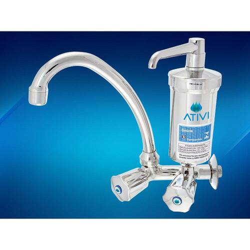 Torneira com filtro e bica móvel cromada, produto produzido dentro de rigorosas normas sendo aprovado pelos órgãos competentes conseguindo uma autonomia espetacular de filtragem de 9 mil litros de água com redução de ate 98% do cloro, tornando esse um diferencial perante a concorrência. Seu material é em abs com 12 meses de garantia .