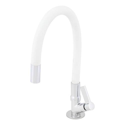Torneira Cozinha Bica Alta Flex Cromada Branca Delinia