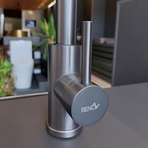 Torneira Para Cozinha Cinza Grafite Misturador Monocomando Rtc 535 Torneira de Cozinha Monocomando RTC 535 - Cinza Grafite, Moderna e Versátil Leve mais elegância, praticidade e durabilidade para sua cozinha com a Torneira Monocomando RTC 535. Com design moderno e acabamento escovado em cinza grafite, ela combina perfeitamente com cozinhas residenciais, industriais, copas e áreas gourmet. Produzida em aço inox , é ideal para quem busca desempenho e estilo em um único produto. Sua estrutura garante durabilidade mesmo em uso intenso, e você ainda conta com 3 anos de contra defeitos de fabricação. O sistema monocomando permite o controle preciso da temperatura e vazão da água com um único movimento, oferecendo muito mais praticidade no dia a dia. A bica giratória e extensível proporciona liberdade de movimento para lavar louças ou encher panelas com facilidade, enquanto o spray com jato arejado garante economia de água sem perder eficiência. Especificações Técnicas: Marca: Reno Material: Aço Inox Cor: Cinza Grafite Pressão recomendada: 5 a 40 mca Misturador: Sim - água quente/fria pode ser Utilizado só com água fria, utilizando conector T Sistema: Monocomando Bica: Giratória e extensível Spray: Jato com arejador Cartucho: Cerâmico Instalação: Na bancada furo de 3,5 cm Conexão de entrada: 1/2 Entrada para filtro: Não Dimensões: Verificar nas Imagens do anúncio. Itens inclusos: Par de flexíveis de aço trançado de 50 cm Sistema de fixação