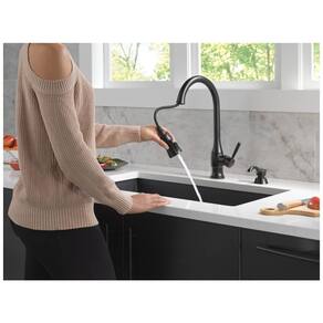 Adicione elegância e praticidade à sua cozinha com a Torneira de Cozinha Hazelwood. Com o MagnaTite Docking, o pulverizador pull down é facilmente acoplado e permanece no lugar quando não está em uso, graças ao poderoso ímã integrado. A tecnologia ShieldSpray oferece um jato concentrado para eliminar sujeiras difíceis e um escudo inovador de água que contém respingos e limpa a sujeira, reduzindo o tempo gasto na limpeza da cozinha. A tecnologia Diamond Seal patenteada reduz os pontos de vazamento e garante uma operação sem vazamentos durante a vida útil da torneira da pia da cozinha, que dura duas vezes mais que o padrão da indústria. O design de pescoço de ganso de arco alto gira 360 graus para maior conveniência durante as tarefas diárias da cozinha.