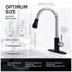 Esta torneira de pia de cozinha é feita com mangueira de PEX de alta qualidade, flexível e antirachaduras, que suporta altas temperaturas e permanece em bom funcionamento mesmo com água quente passando por ela. A torneira possui uma configuração de três modos, para alternar facilmente entre jato para encher, spray para enxaguar e pausar evitando respingos no modo multitarefa. O arejador de torneira em formato de favo de mel oferece água mais macia, sem respingos e ruídos, fornecendo água limpa e fresca. A torneira de cozinha de alça única com bico pulverizador pull down é equipada com um bico pull down ergonômico de rotação de 360 graus, proporcionando uma experiência de uso mais conveniente. A torneira de cozinha de aço inoxidável é fácil de combinar com bica de arco alto de 39 cm, tornando a limpeza muito fácil mesmo para panelas e jarras grandes. Esta torneira pode ser instalada livremente devido ao seu longo tubo de rosca, podendo ser uma torneira de cozinha de 3 furos ou torneira de cozinha de 1 furo.