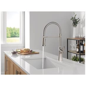 Atualize sua cozinha com a Torneira de Cozinha Ermelo Pro, que oferece liberdade de movimento com sua bica de desencaixe flexível e design de mola. Com o MagnaTite Docking, um ímã poderoso mantém o pulverizador pull down no lugar quando não está em uso. A tecnologia Diamond Seal patenteada reduz os pontos de vazamento, enquanto os orifícios de pulverização TouchClean permitem a limpeza fácil do acúmulo de cálcio e cal. A torneira é fácil de instalar e pode ser usada em furos únicos ou 3 furos, 20 cm, com uma placa de deck opcional incluída. Além disso, a torneira é compatível com ADA e livre de grafite. Confie na qualidade da Delta Faucets, uma marca que atende ou excede os requisitos de desempenho de produto aplicáveis e padrões do setor de segurança.