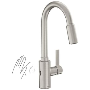 Este produto é uma torneira de cozinha com acabamento Spot Resist inoxidável, que resiste a impressões digitais e manchas de água, mantendo a aparência limpa. Possui um sensor único MotionSense Wave para ativação sem toque, permitindo ligar e desligar a água facilmente com o aceno de uma mão. A tecnologia de spray Power Clean fornece 50 mais potência de pulverização em comparação com a maioria das torneiras suspensas e extraíveis sem essa tecnologia. As baterias necessárias 6 baterias AA estão incluídas, eliminando a necessidade de uma tomada dedicada. Alimentação CA opcional está disponível. Equipado com o sistema Reflex para operação suave, movimento fácil e encaixe seguro da cabeça de pulverização. O design flexível permite a instalação através de 1 ou 3 furos placa opcional incluída e possui sistema de conexão rápida Duralock para fácil instalação. As linhas de fornecimento são flexíveis com 38 acessórios de compressão.