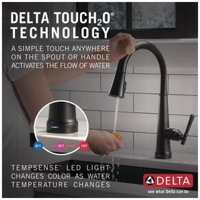 A torneira de cozinha Emmeline Kitchen Collections apresenta um design elegante e aerodinâmico, com saliências em forma de diamante na bica. A tecnologia Delta Touch2O permite que o fluxo de água seja ativado com um simples toque em qualquer lugar da bica ou alça com o pulso ou antebraço, mantendo a torneira limpa mesmo quando as mãos estão sujas. A luz LED Delta TempSense muda de cor para alertar sobre a temperatura da água, evitando surpresas ou desconfortos. As torneiras para pia de cozinha com orifícios de spray TouchClean permitem que você limpe facilmente o acúmulo de cálcio e cal com o toque de um dedo. A tecnologia Delta ShieldSpray limpa com precisão e contém sujeira e respingos, economizando tempo e esforço. A tecnologia patenteada DIAMOND Seal reduz os pontos de vazamento e dura o dobro do padrão da indústria, garantindo uma operação sem vazamentos durante toda a vida útil da torneira da cozinha. O MagnaTite Docking usa um poderoso ímã integrado para encaixar o bastão de pulverização da torneira com precisão no lugar e mantê lo lá para que permaneça encaixado quando não estiver em uso e não caia com o tempo. A instalação é fácil e pode ser feita em furos únicos ou 3 furos de 20 cm, e as linhas de abastecimento InnoFlex PEX são integradas à torneira para um ponto de vazamento a menos. O adaptador AC opcional EP102157 pode ser encomendado separadamente.
