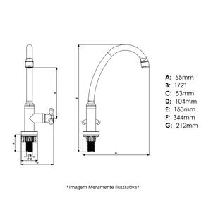 MODELO Linha: Lisboa Fixação: De Mesa Bica: Alta Abertura: ¼ de Volta Uso: Cozinha