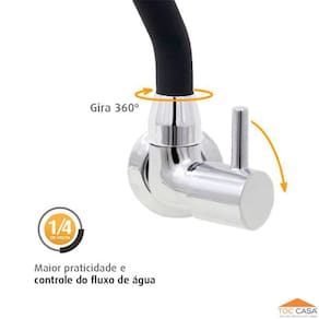 Produzida com matéria prima de excelente qualidade: bica revestida de silicone e arejador e corpo em latão, possui volante modelo C61 com 1/4 de volta facilitando o abrir e fechar.