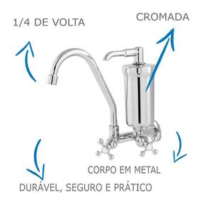 Filtrar a água que você consome diariamente ficou mais prático e fácil com este modelo de filtro. Acoplado com a torneira da cozinha, deixa à mão está função tão importante no dia-a-dia. Além disso, possui acabamento cromado que deixa a sua cozinha bela e utilitária, economizando espaço. A saúde da sua família começa com a água de qualidade. É resistente, fácil de limpar e protegido contra oxidação. Fica acessível e prático para encher copos e garrafas. Possui certificado do inmetro.