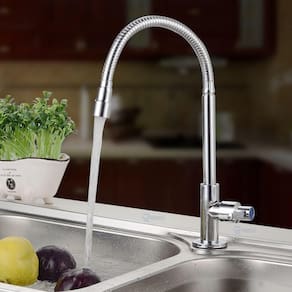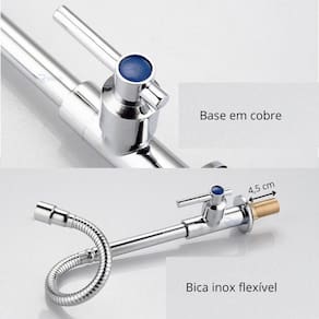 As torneiras gourmet de cozinha mesa contam com bica móvel em Aço Inox gira 360 e flexível podendo ajustá-las aos mais diversos tamanhos de pias. Possui mecanismo 1/4 de volta que permite a rápida abertura e fechamento da torneira e corpo em metal. Conta também com arejador em forma de comei-a, ele permite que o jato fica mais suave e uniforme, evitando respingos. A torneira gourmet cozinha é uma excelente escolha para quem procura custo x benefício. Fabricados em metal cromado, com componentes em Aço Inox e ABS ABS é uma resina termoplástica derivada do petróleo de excelente qualidade com acabamento todo cromado. Ficha técnica: Tipo de bica: giratória e flexível Tipo de mecanismo: 1 /4 de volta Tipo de arejador: jato concentrado Bitola: 1/2 Pressão Mínima: 2 m.C.A. Pressão Máxima: 40 m.C.A. Fixação: Mesa Somente Água Fria Indicado para: cozinha. Marca: Radiaste Ean: 7898759360284