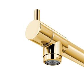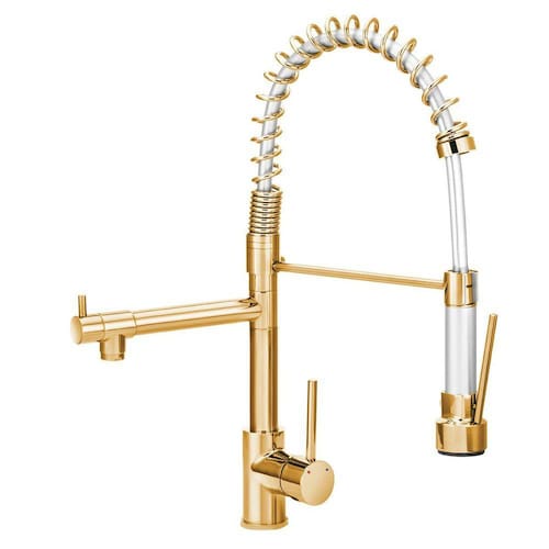 Torneira Cozinha Gourmet Monocomando Gold Dourada Ouro 50 Cm Misturador monocomando gourmet com bica móvel giratória gira 360 para qualquer lado possui ducha extraível com controle de jato para execução de pré lavagem, auxiliando generosamente nas necessidades diárias da sua cozinha, área gourmet ou até mesmo no seu balcão americano. Possui duas entradas de água para água quente e fria. A temperatura da água é trocada através do mesmo local de acionamento tanto para água quente quanto para água fria, devido ao sistema MONOCOMANDO, que por sua vez traz o conforto e a economia de espaço na sua bancada, necessitando somente de 01 uma furação de diâmetro 35 mm para a torneira misturadora ser instalada. Inovada com bica em aço inoxidável e base fabricada em metal cromado, sob processo extrusivo garantindo qualidade e resistência contra ranhuras internas e descascamentos. Possui mecanismo de vedação cerâmico e sistema de acionamento e fechamento 1/4 de volta, trazendo ergonomia e praticidade, pois não precisa girar demais para abrir e fechar. Sua ducha pré-lavagem conta com o fleível em aço inoidável garantindo a conservação do acabamento externo; possui suporte em mola fabricada em latão com acabamento cromado gerando sustentação e segurança tornando sua extrutura rígida para a execução das atividades. Além de tudo isso, conta com a saída de água tradicional com mecanismo 1/4 de volta e bica giratória, possuindo arejador em aço inox com tela garantindo um bom e arejado fluxo de água para as atividades mais simples do dia-a-dia. Uso e Manutenção:- 1 ano de garantia contra defeito de fabricação e mecanismo de vedação. Produto de excelente qualidade e durabilidade. - A pressão da água deve estar entre 5 e MCA e 40 MCA - Não use palha de aço ou qualquer produto químico na limpeza do metal. Limpe-o com toalha macia e sabão neutro. -na instalação da peça, evite o uso de chaves de aperto nas partes cromadas. Perguntas freqentes sobre este produto: 1 - Esta torneira possui misturador R.: Sim. 2 - Esta torneira é para água quente e fria R.: Sim. Todavia, é necessário que você já tenha o sistema que determina a temperatura da água em sua instalação. O produto não determina a temperatura da água, e sim o aquecedor que será instalado junto ao produto. 3 - Esta torneira possui duas entradas de água R.: Sim. 4 - Esta torneira vem completa R.: Sim, o produto segue completo com mangueiras e acessórios para fiaxação para que seja realizada a devida instalação. 5 O produto acompanha aquecedor R.: Não. O sistema de aquecimento da água deverá ser adquirido com um profissional da sua confiança caso não tenha instalado. 6 Posso usar somente com água fria R.: Sim. Basta colocar um plug tampão de 1/2'' em uma das mangueiras para que esta estanque a saída de água por uma das vias. Marca: Modelar