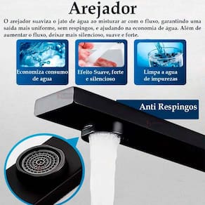 Arejador Econômico e Eficiente: Mistura ar à água para suavizar o jato, reduzindo respingos, tornando o uso mais silencioso e aumentando a economia de água – sem comprometer a performance.