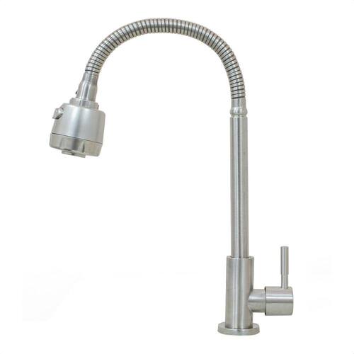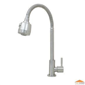 Torneira para Cozinha Gourmet de Mesa Bica Alta Flexível em Inox Acetinado Duplo Jato