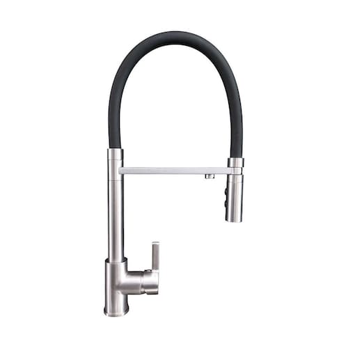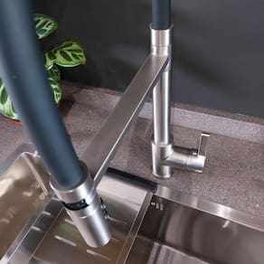 Mistura de água quente e fria com controle monocomando Entrada para filtro de água integrada Material em aço inox 304 de alta durabilidade Acabamento na cor prata escovada com design moderno e elegante Ideal para facilitar a lavagem da louça, especialmente em dias frios