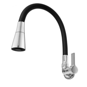 A Torneira De Cozinha Parede Preta Gourmet Cônico Cromado C-65, o cano é Flexível e Emborrachado uma das novidades mais belas e fantásticas em torneiras, com sua Base em Metal possui grande resistência, seu formato trás modernidade, inovação e requinte.
