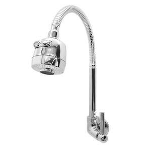Torneira cozinha parede gourmet ducha cromado c-72 Cor: prateado Torneira tubo flexível cozinha parede gourmet 02 jatos Torneira para instalação em parede A torneira tubo flexível cozinha parede gourmet 02 jatos o cano flexível é uma das novidades mais belas e fantásticas em torneiras, seu formato gourmet trás modernidade, inovação e requinte. Seu cano flexível proporciona mobilidade, flexibilização além de um design moderno proporciona a opção de 02 jatos de água. Seu acionamento em alavanca combinado ao mecanismo 1/4 de volta é muito eficaz e de simples manejo além de proporcionar grande economia de água se tornando uma bela opção de compra. O mecanismo 1/4 de volta é o que há de mais moderno em mecanismo para torneiras, sendo o que mais tem vida útil e o que menos apresenta defeitos ao decorrer do uso, economiza água trás conforto e praticidade. Especificações técnicas do produto e garantia. -marca: alpha hidrometais-utilização: cozinha-tipo: gourmet ducha-material: abs, aço inoxidável-instalação: de parede-comprimento total do tubo flexível: 50 cm-bitola entrada água: 1/2 polegada com adaptador de 3/4 -mecanismo de abertura: 1/4 de volta economia de água 03 meses de garantia contra defeitos de fabricação imagem do produto meramente ilustrativa