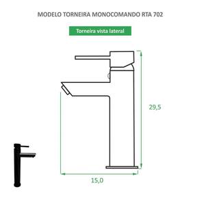 Torneira Monocomando Bica Alta Preta Fosca Reno RTA 702 Transforme seu banheiro ou lavabo com a sofisticação da Torneira Monocomando Bica Alta Preta Reno RTA 704. Seu design moderno e acabamento fosca garantem elegância e durabilidade. Água Quente e Fria: Sistema monocomando para controle fácil da temperatura. Durabilidade Garantida: Cartucho cerâmico com mais de 600.000 ciclos de uso. Instalação Simplificada: Acompanha kit completo para fácil instalação. Especificações Técnicas: Marca: Reno Modelo: RTA 702 Design: Redonda Cor: Preta Fosca Tipo: Monocomando Bica Alta Material: Aço Inox 304 Sistema: Água quente e fria : 3 anos contra defeitos de fabricação Instalação: Furação da bancada: 35mm de diâmetro. Kit de instalação incluso: Duas mangueiras para água quente e fria. Rosca de fixação com porca para aperto e borrachas de vedação. Pressão: 4 mca metros por coluna d'água a 40 mca. Dúvidas A Banho&Casa está à disposição para atendê-los de segunda a sexta, das 8:30 às 17:30. Marca: Não Informado