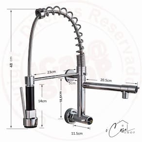 A Torneira Gourmet Spring Wall foi projetada para ser o destaque de sua cozinha combinando seu design moderno e imponente à suas funcionalidades. Projetada para utilização em pontos de água fria, conta com registro principal em sua base e auxiliar em sua bica giratória. A saída com aerador proporciona um fluxo perfeito e sem respingos. A versatilidade da mangueira flexível com ducha spray permite a limpeza pesada, a higienização de utensílios e de sua bancada de forma fácil e eficiente. Fabricada totalmente em metal com materiais nobres “inclusive a ducha” conta com revestimento especial em tripla camada de Cromo conferindo ao produto um acabamento perfeito e durável. Nossa torneira se difere de produtos similares, a concorrência oferece itens compostos por partes plásticas e revestimento em pintura, sendo também menores, frágeis e pouco duráveis.