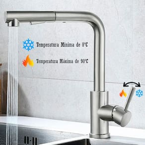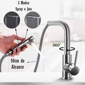 - Giratória e Flexível: A torneira possui o corpo com a capacidade de rotação de 360º e o bico extensível em até 50cm, facilitando a lavagem;