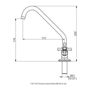 Torneira De Cozinha Mesa - Job - 1167 - Torneira de cozinha metálica econômica, além de ser prática, resistente e funcional. - Composição básica: liga de cobre, plásticos de engenharia e elastômeros.