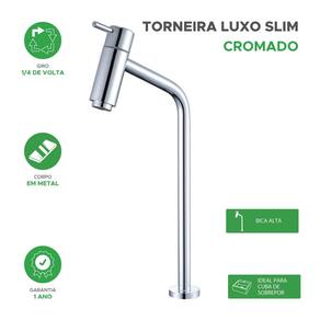 A torneira para cuba e lavatório luxo slim da kokay possui design elegante e discreto. Feita em metal para maior durabilidade e com abertura de 1/4 de volta, proporciona maior eficiência e economia de água. A torneira é feita de metal cromado, o que garante a sua durabilidade e resistência à corrosão. Ela possui um arejador articulado que permite regular o ângulo e a vazão da água, economizando até 50% de água. Além disso, ela tem um acionamento prático por alavanca, que facilita o controle da temperatura e da pressão da água. A torneira para cuba e lavatório luxo slim cromado é compatível com cubas de apoio, sobrepor e embutir, e com lavatórios de coluna ou suspensos. Ela tem uma bica alta que proporciona mais espaço e conforto para a utilização. Ela também tem um acabamento cromado de alto brilho que combina com qualquer estilo de decoração. Essa torneira alia beleza, praticidade e economia. Ela é fácil de instalar e de limpar. Você vai se surpreender com a qualidade e o preço desse produto incrível.