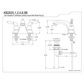 Kingston Brass KB2622B Nápoles Torneira central de lavatório de 10 cm pop-up de latão, latão polido
